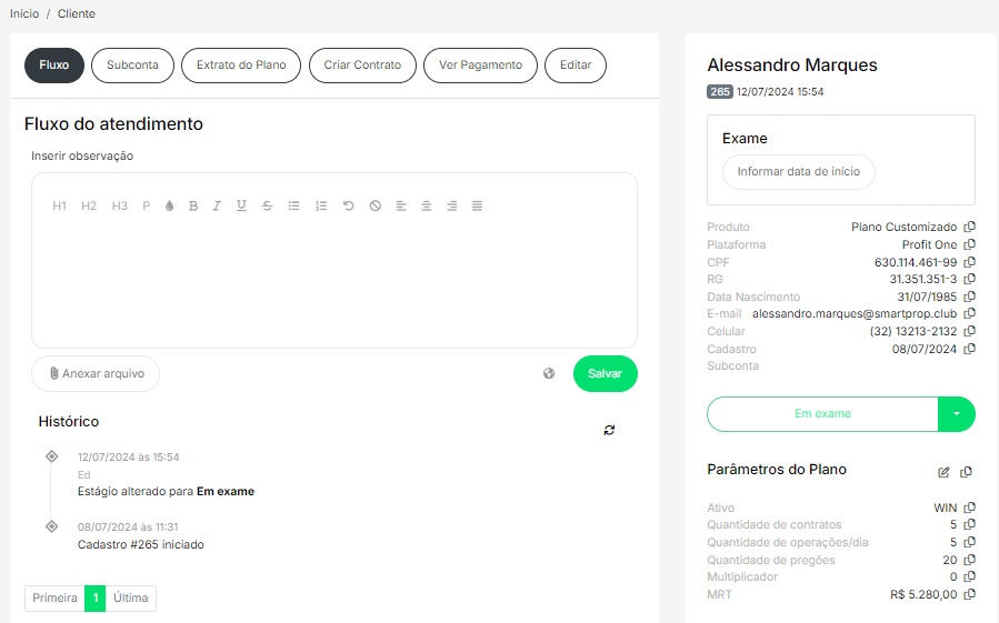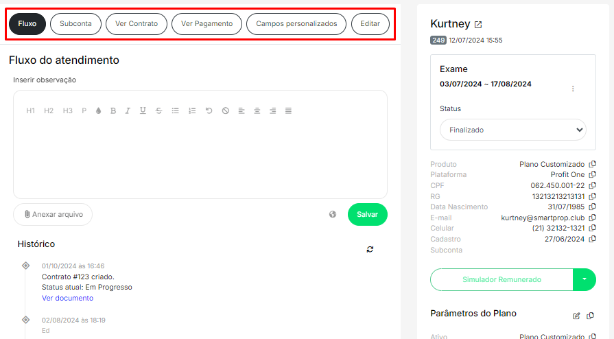 - Cliente: Modifique os dados pessoais e informações de contato do cliente, como nome, e-mail, CPF, etc.