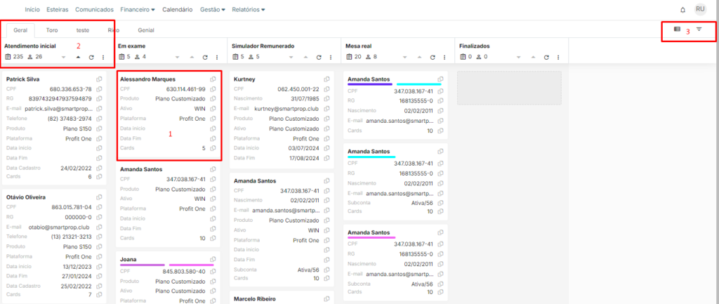 - Ícone de usuários – Quantidade de traders: Mostra a quantidade de traders associados à esteira ou ao plano.