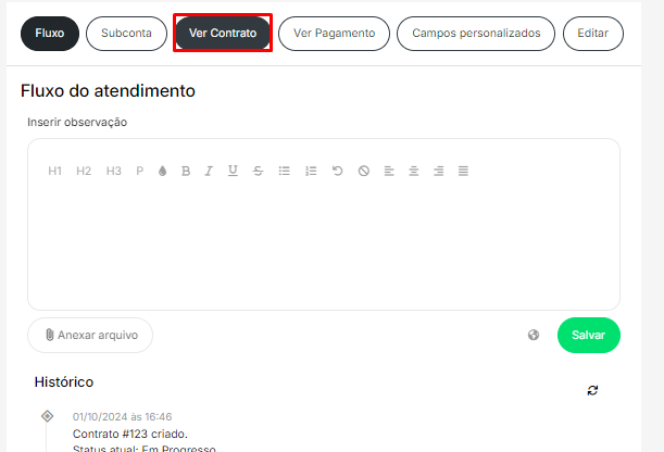 - Ver: Ao clicar em “Ver”, você poderá verificar o fluxo completo do contrato.