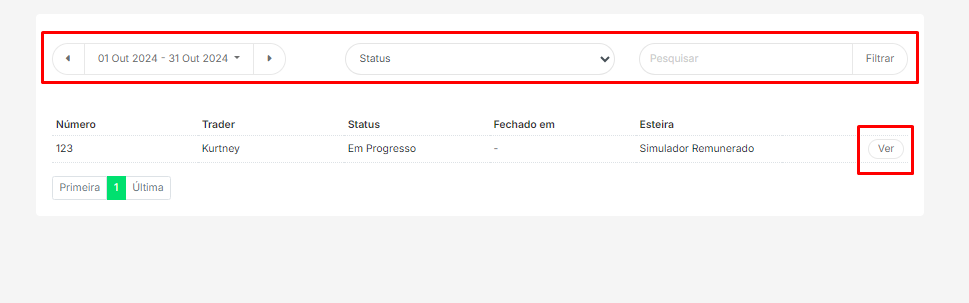 - Seta para cima – Organiza a esteira por ordem decrescente: Organiza a lista de planos ou traders em ordem decrescente, de acordo com um critério como data ou valor.