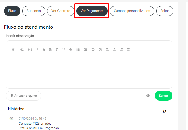 - Ver Pagamento: Onde podemos verificar todo o fluxo de pagamento.