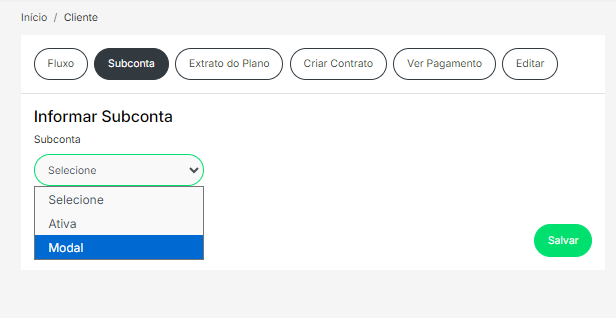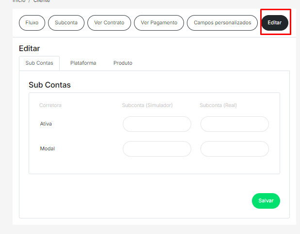 - Ativa: Define a subconta como vinculada à plataforma Ativa.
