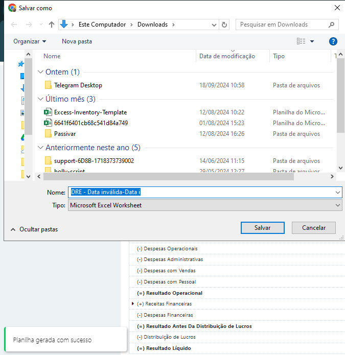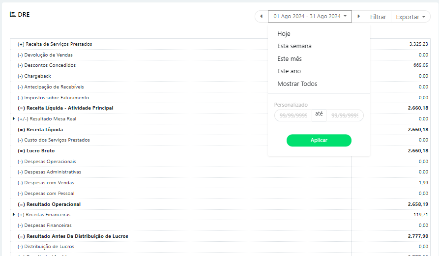 Lembrando que, para acessar essa tela temos que ir em Financeiro > DRE.
