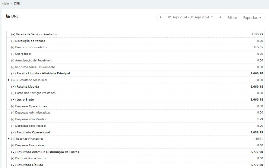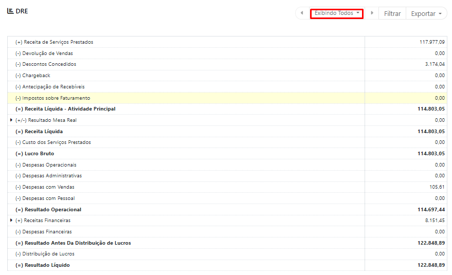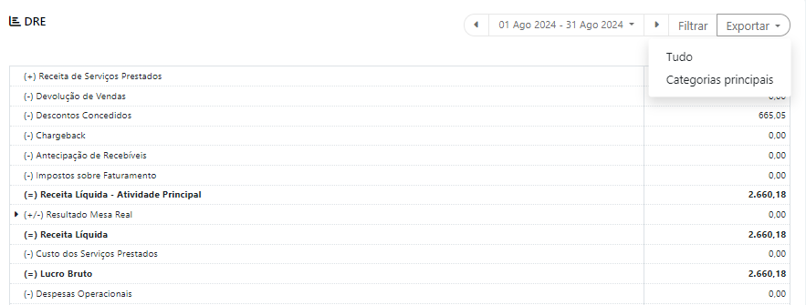 Esta é a tela principal da DRE.