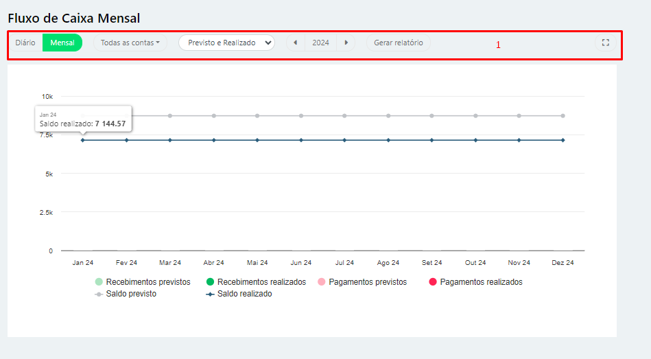 1 – Abaixo, podemos ver as opções onde podemos navegar tanto na tela de Fluxo de Caixa Mensal quanto na Diária: