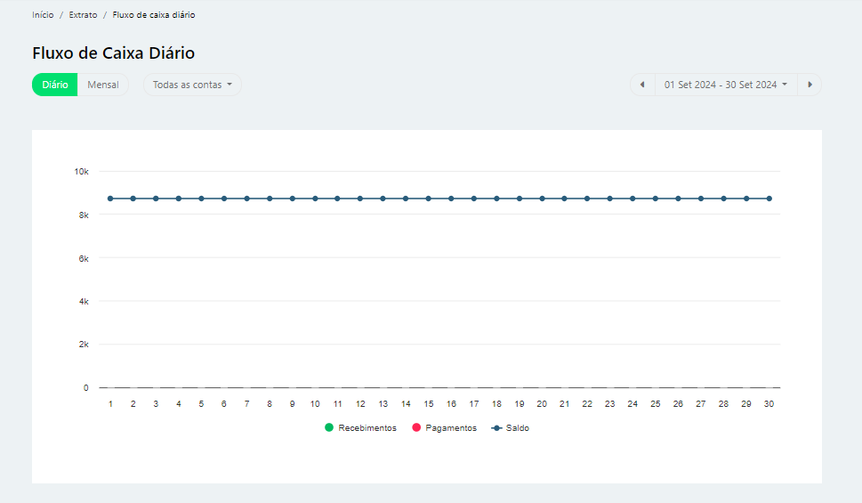 Esta é a tela principal do Fluxo de Caixa Diário.