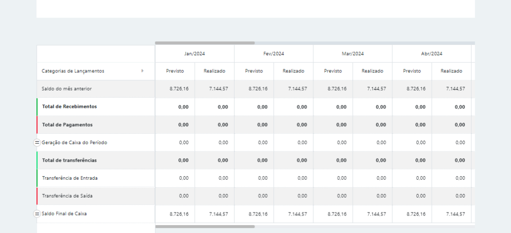 - Gerar Relatório: Gera um relatório de fluxo de caixa mensal.