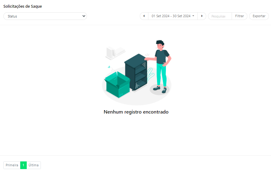 Para acessar este módulo, siga o caminho: Gestão > Afiliados > Solicitações de Saque.