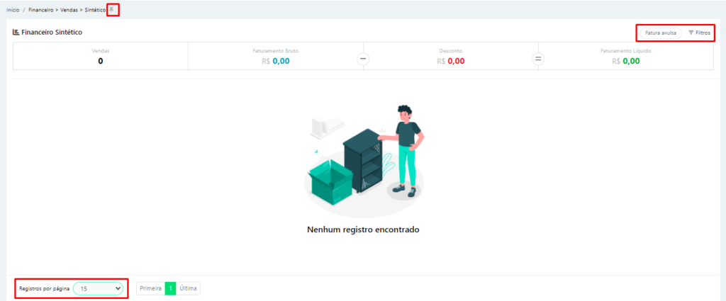 Para chegarmos nesse módulo, devemos ir em Financeiro > Vendas > Sintético.