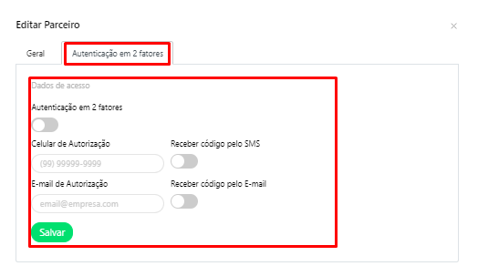 - Senha: Senha de acesso do parceiro.