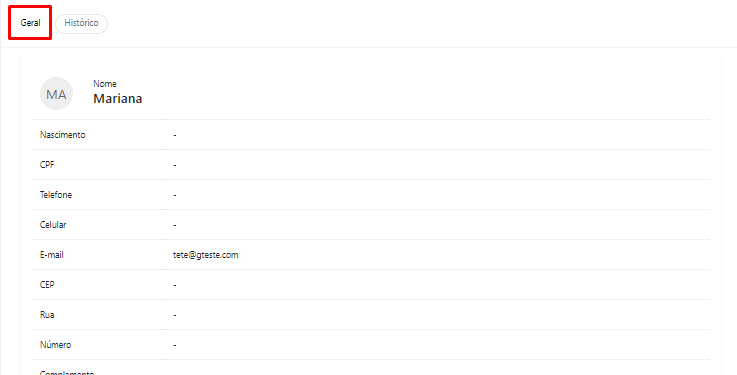 Dessa forma, você poderá ver todas as informações do parceiro selecionado, tanto no modo geral quanto no histórico completo de atividades e interações.