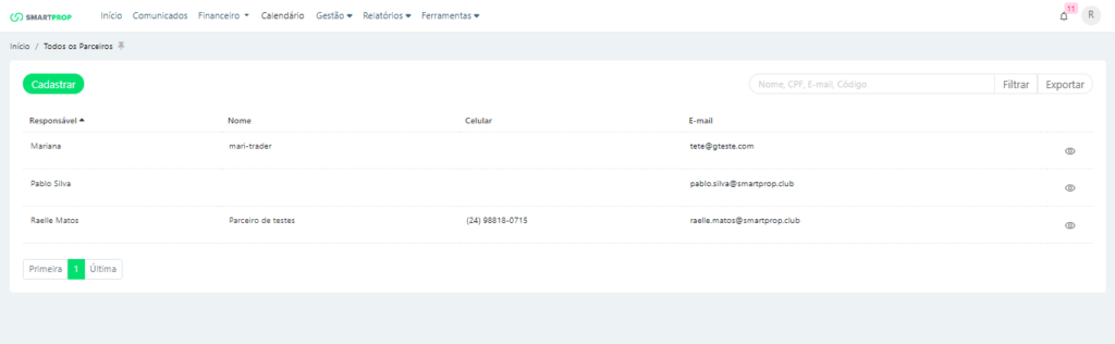 Esta é a tela principal de Todos os Parceiros.