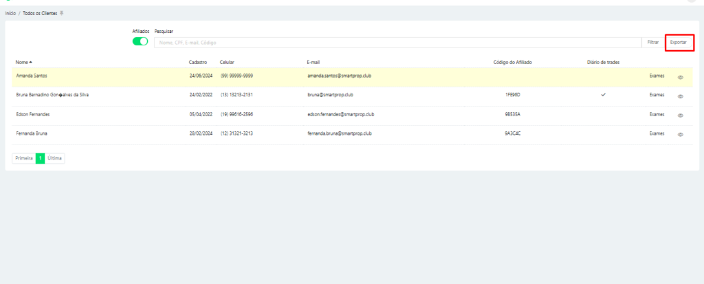 Vale ressaltar, caso queira Exportar os dados da tela, basta clicar no botão “Exportar”.