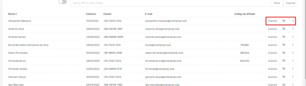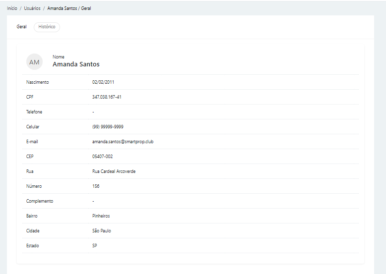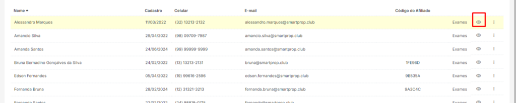 Além disso, é possível verificar os dados completos do cliente clicando no Ícone de Olhos, que exibe todas as informações detalhadas do cliente.