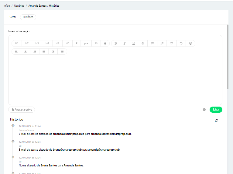 - Status: Situação atual (concluído, pendente, em andamento, etc.).