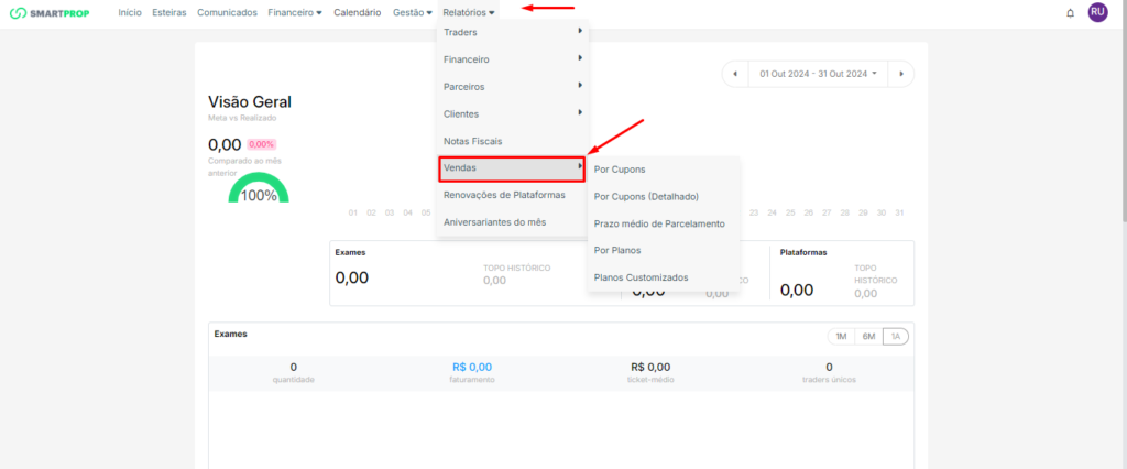 Dentro do menu de vendas, estão disponíveis as seguintes opções: