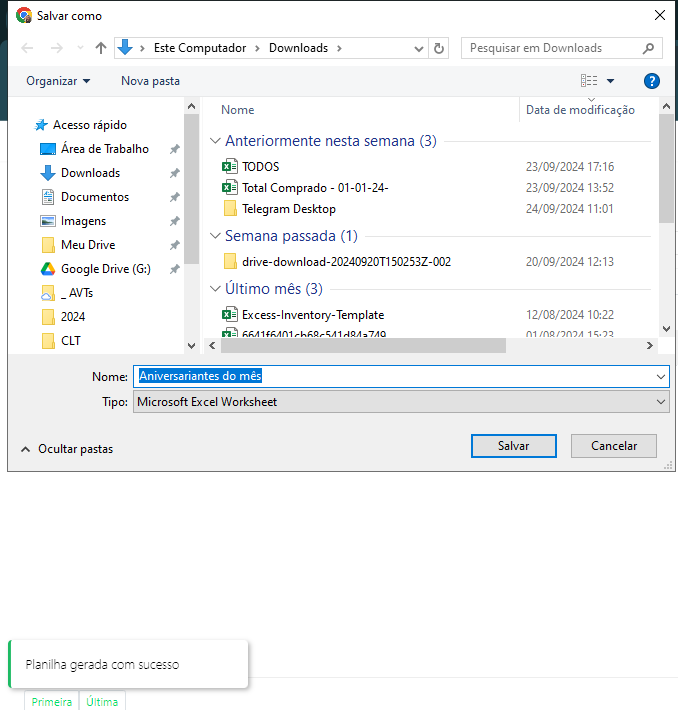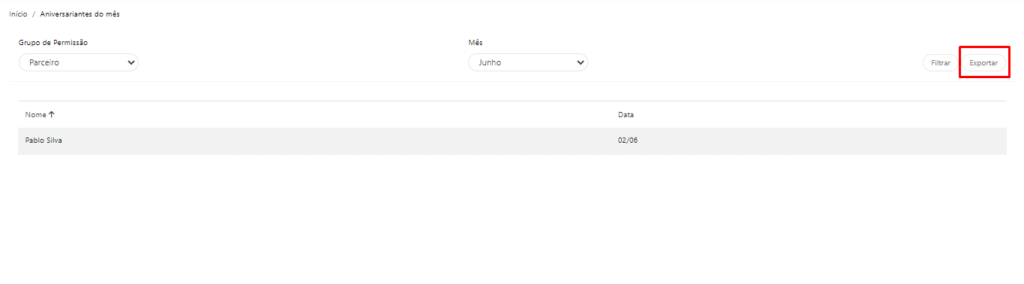 Aqui está um exemplo do processo para exportar os dados dos aniversariantes:
