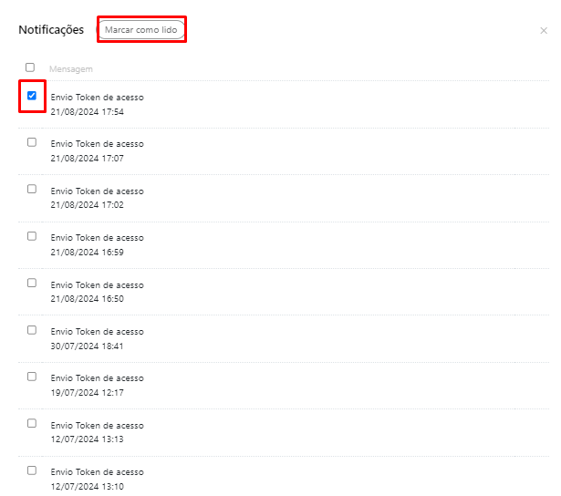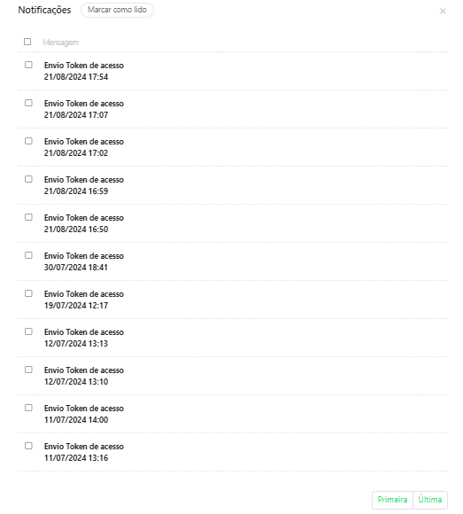 Nesta aba, você poderá visualizar todas as notificações recebidas e marcá-las como lidas conforme necessário.