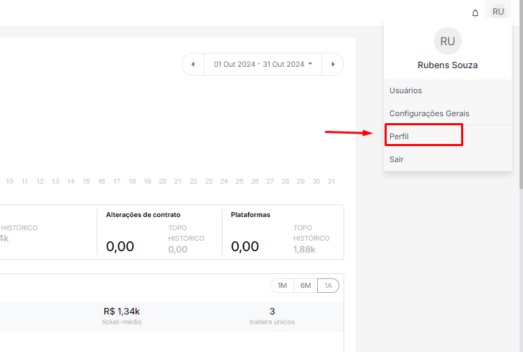 - Acesse o menu de Perfil na plataforma.