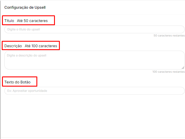 - Descrição: Um breve resumo (até 100 caracteres) explicando o benefício ou o valor do upsell.
