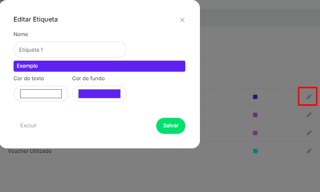- Cor de Texto: Escolha a cor do texto que será exibido na etiqueta, para garantir destaque ou diferenciação visual.