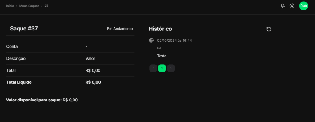 - Status: Filtre saques por status, como pendente, aprovado, ou concluído.