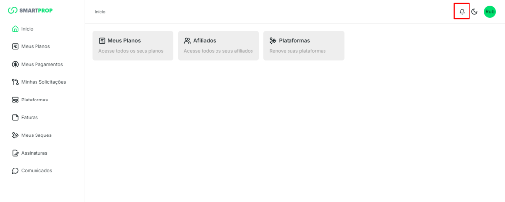 Para verificar as notificações, basta clicar no ícone do sino, e todas as notificações serão exibidas, permitindo que você acompanhe os avisos ou atualizações recentes.