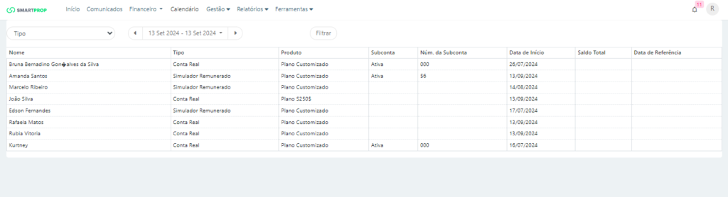 Para chegar a essa tela, devemos clicar em Relatórios > Traders > Status.