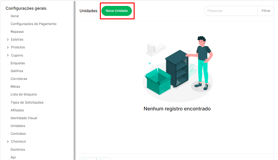 Essas opções permitem configurar uma nova unidade de forma personalizada, garantindo que cada unidade tenha uma identidade visual própria e as documentações legais adequadas para seu funcionamento.